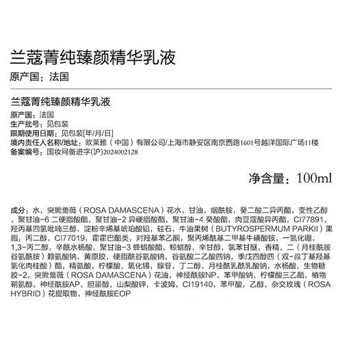 兰蔻的菁纯臻颜精华乳液以其高端奢华的设计和优质的成分而闻名,尤其适合追求极致护肤体验的女性。产品的主要成分为玫瑰精华,能够深层滋养肌肤,提升皮肤的紧致度和光泽感。对于那些希望改善肌肤老化迹象的女性,兰蔻菁纯臻颜精华乳液无疑是一个非常理想的选择。